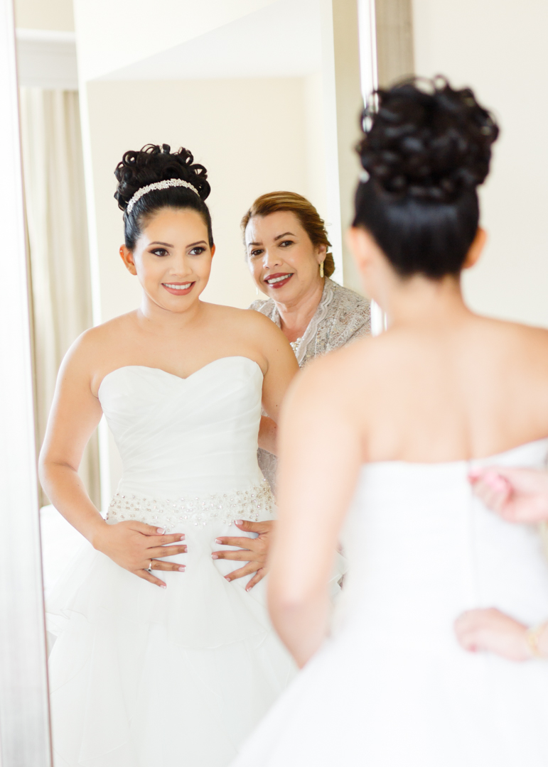 I met Glenda at her hotel room where she was getting ready surrounded by her family. We decided to do a first look with them because, let’s face it, what is sweeter than having grandma, mom, sister, aunt and cousins seeing you for the first time in a beautiful white dress?