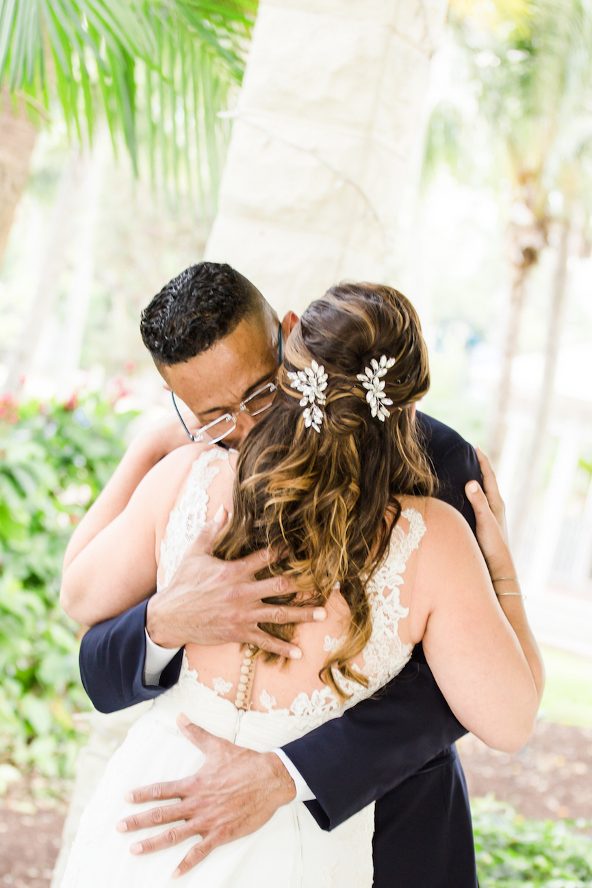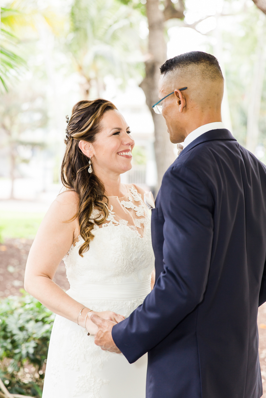 Remember Lauren and Ed? I photographed their nautical-themed engagement session last year and was so excited when they contacted me to photograph their nuptials! Their wedding ceremony and reception took place at the lovely Out of the Blue Waterfront venue in Jupiter, FL. My favorite part of their big day? The first look which was emotional and romantic.