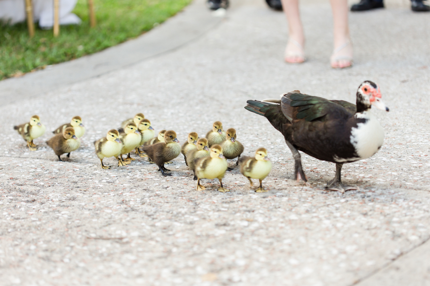 Rita has the most genuine smile I’ve ever seen, and Monty can’t keep his eyes off of her. Last Spring I had the pleasure of photographing their timeless love story at the Fort Lauderdale Historical Society.  Their wedding celebration was flawless; with beautiful soft green and peach decorations and the cutest of wedding guests {see the ducklings making an entrance}.